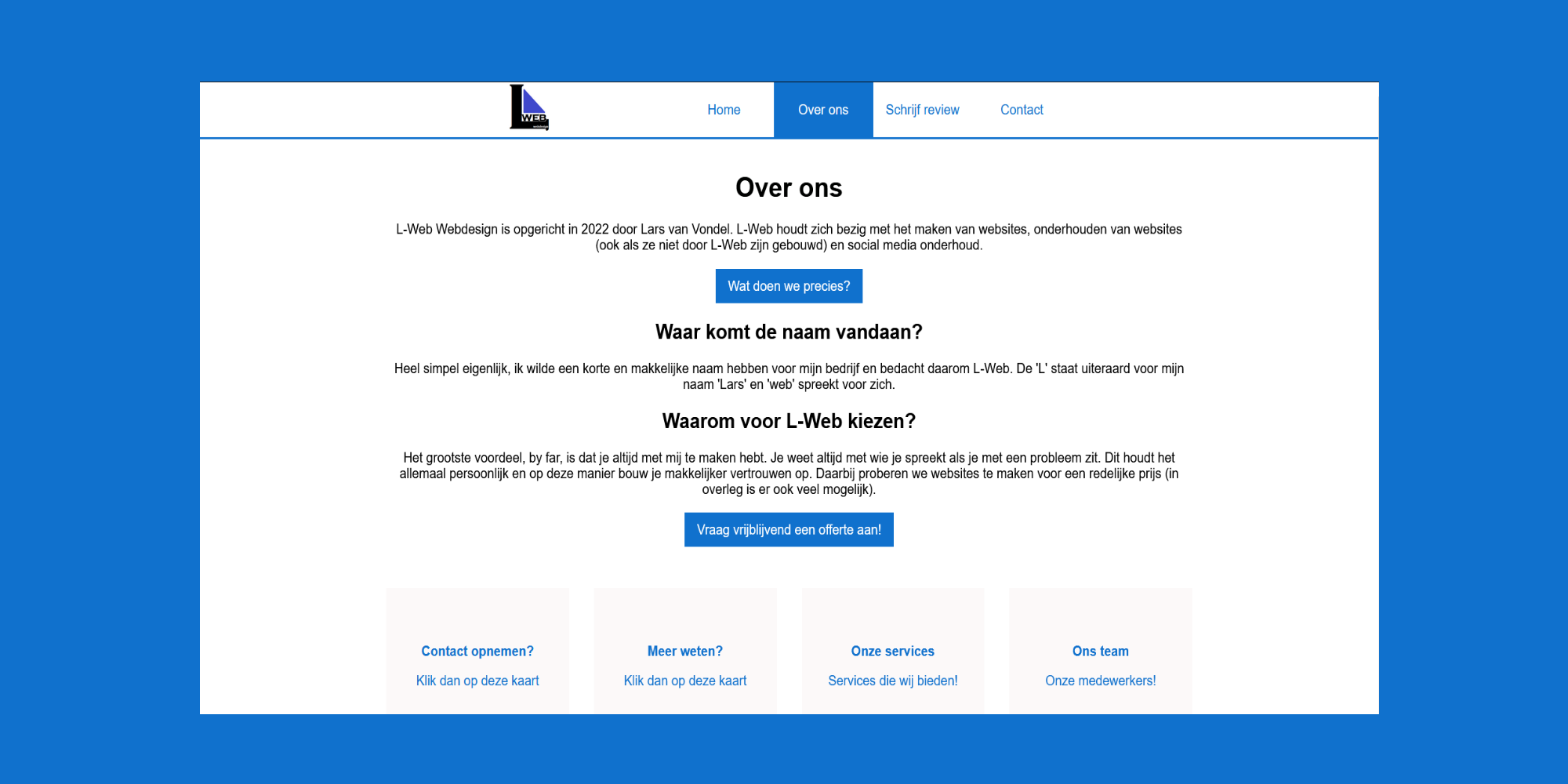 Ben je op zoek naar een betrouwbare en betaalbare website? Dan is L-Web Webdesign misschien wel hét bedrijf voor jou! Wij maken websites, groot en klein voor een betaalbare prijs! Daarnaast leveren we ook nog andere services die misschien wel voor jouw bedrijf interessant zijn!